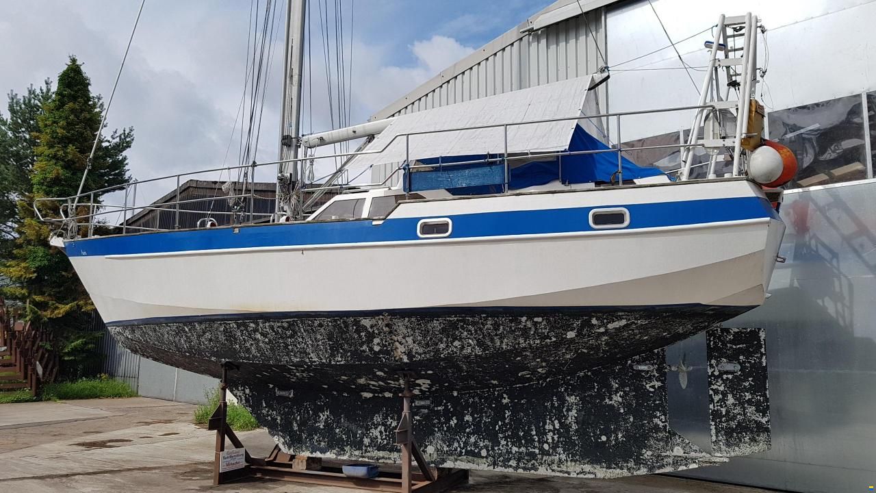 Es ist ein Aluminiumboot, ein Knickspanter mit Mittelcockpit, ein Fahrtensegler mit dem man die Welt bereisen könnte. Es stellte sich heraus, dass der Eigner verstorben ist und es seit 4 Jahren nicht mehr benutzt wurde.