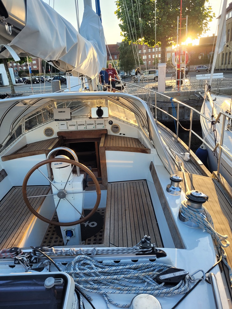 Bei Seegang ist ein Mittelcockpit klasse, im Hafen (hier in Svendborg) kann man trotzdem schön sitzen (2024)