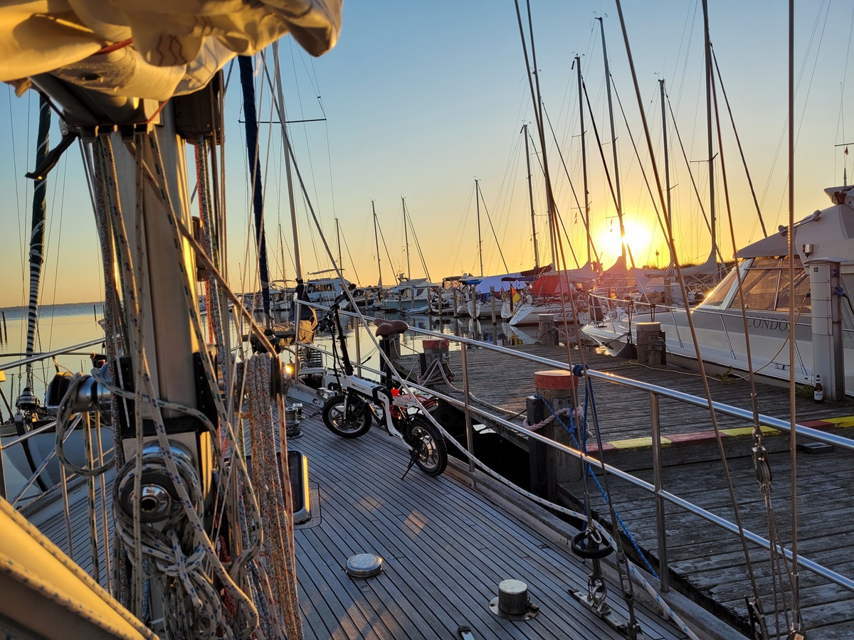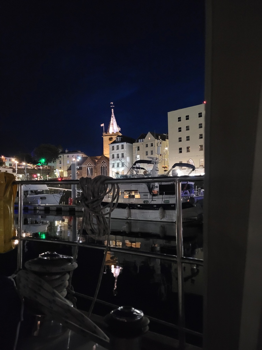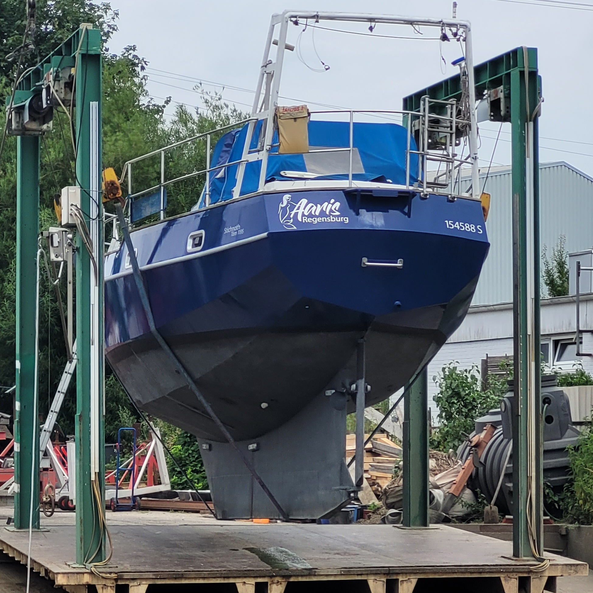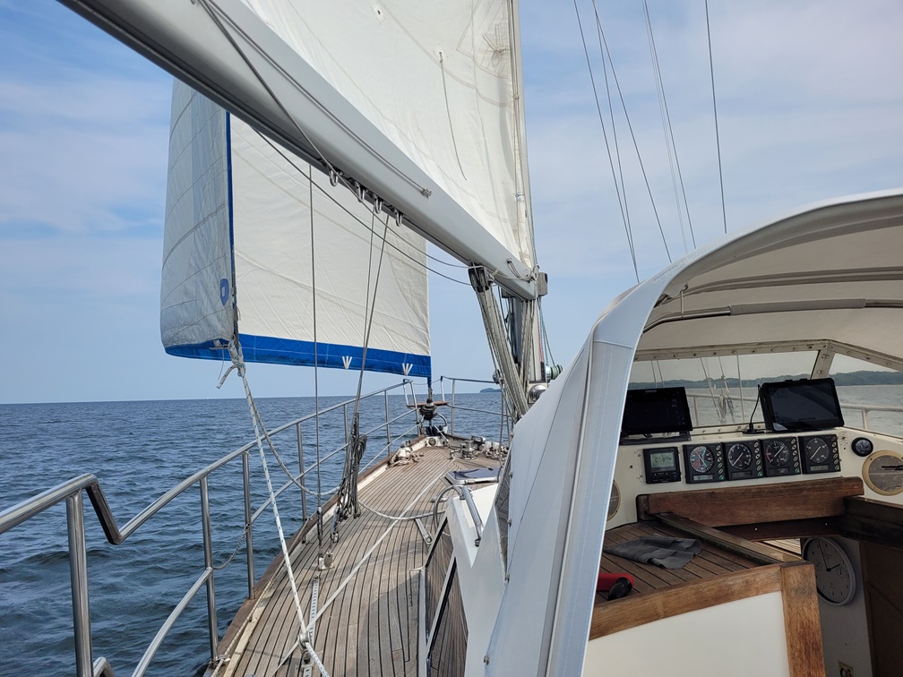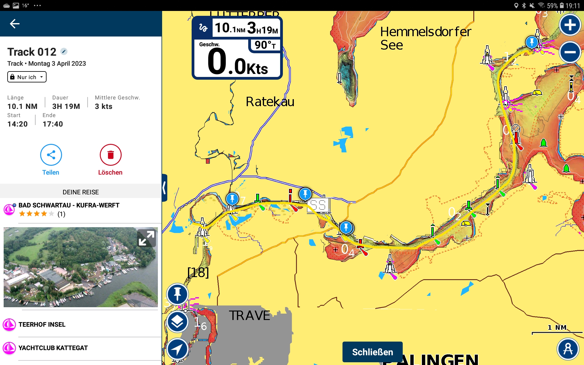| Bemerkungen: Track 042: Wir entschieden in der Nacht zu fahren, da wir hier besseren Wind haben, als am nächsten Tag. Da hätten wir den Wind nur auf der Nase gehabt und wahrscheinlich 36 sm motoren müssen. Diese Nachtfahrt hatte es in sich: Es wurden 14 - 16 Ktn Wind vorausgesagt, es waren aber dann tatsächlich 18 - 25 Ktn bei 1m kurzer Welle die aber dann vor der Kieler Förde weniger wurde. Es war aber mächtig Bewegung im Schiff. An dieser Fahrt merkt man einfach die Erfahrung von Sepp, der hier sehr viel das Ruder hatte und die Segel sehr gut trimmte. Wir hatten aber ab 00:30 mit starkem Regen zu kämpfen, gut ist hier unsere Sprayhood unter der man sich geschützt aufhalten kann. Da wir den Kurs direkt auf die Kieler Förde nicht halten konnten, mussten wir eine Wende machen und die letzten 9 sm mit Maschine fahren. Wir sind glücklich in Laboe um 05:10 Uhr eingelaufen, mussten allerdings noch ca. 30min einen freien Liegeplatz suchen. Übermorgen startet hier in Kiel ein großes Event mit einem Fest für das Ocean Race Europe, welches am 10. August startet. Boris Hermann wird hier mit seiner Crew starten. Er wird uns vermutlich, ausser wir sind schneller ;-), auf der Nordsee überholen, vielleicht sende ich einen Funkspruch zu Boris ob ich zur Seite gehen soll :-)
