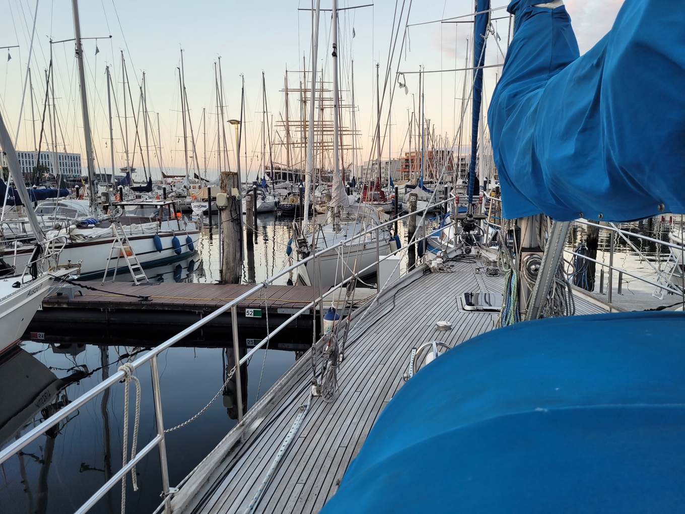 | Bemerkungen: Ok, ich machte mich auf zum spannendsten Abschnitts meiner Reise, ich musste an den Orcas vorbei. Laut Orca-App waren die letzten Angriffe auf Segelboote am 01.09.2025 im Riva Arousa und vor Vigo, da musste ich nun vorbei. Ich dachte mir, es sind ja Säugetiere, die nachts evtl. schlafen, vielleicht auch nicht so gut sehen oder keine Lust haben, so dass ich lieber in der Nacht vorbei fahre. Zuerst musste ich aber die Costa da Morta hinter mich bringen, die mir ja schon soviel Mühe gekostet hat, am Kap Finisterre war sie zu Ende. Dieses berühmte Kap heißt übersetzt das "Ende der Welt" was die Menschen vor Christoph Columbus damals dachten. Davor die Weite des Atlantiks, mit seinen mir durchaus bekannten langen Wellen die bis von Amerika rüberkommen. Mitunter ist dazwischen ein Sturm oder sogar ein Orkan, dessen Wellen uns auf der Biskaya, kurz vor A Coruna erwischten. Nun kommen wir also in die wunderschönen Fjorde, würde ich sie bezeichnen, die ins schöne Galizien hineinragen. Hier wollte ich eigentlich unbedingt mal ankern, auf meinem Hafenhandbuch ist ein Bild eines Segelbootes, welches vor dem weißen Sandstrand ankert und man badend zum Strand schwimmen konnte. Aber leider wird daraus nichts, denn die Orcas sind schlaue Tiere, die das auch wissen, hier gibt es viele Segelboote. Sie sind gerade hier, manchmal auch ganz wo anders, z.B. vor Gibraltar, aber nein sie sind hier. Also mache ich erstmal einen Bogen um diese Region. Ich beobachte das Meer genau, ob ich etwas sehen kann, aber alles ruhig bisher. Dann sehe ich hinter mir etwas schwarzes unterhalb der Oberfläche - oh nein - es springt aus dem Wasser, es ist glücklicherweise ein Delfin, die ich auf meiner Reise schon so oft gesehen habe, dann kommt noch einer, der bis zur Reling hoch springt, ich könnte mit der Hand danach greifen, so nah, dreht sich in der Luft und schaut mich an, sehr witzig dachte ich mir, als wenn er wüsste, dass ich gerade angespannt bin. Die Dämmerung kommt es wird Nacht ich, als ich an Vigo vorbei bin, gehe ich weiter unter Land unweit der 20m Tiefenlinie, so wie es allgemein empfohlen wird, beim Umgang mit Orcas, das ist ihnen zu seicht. Ich schnaufe durch und bereite mich auf die Nachtfahrt vor. Es blieb ruhig der Wind frischte etwas auf und ich komme gut voran. Wenn ich müde werde, schau ich nochmal ringsum, dann auf das Radar und auf das AIS ob irgend ein Schiff in den nächsten 3-4sm in der Nähe ist, dann schlafe ich so ca. 25 min, denn bis dahin kann kein Schiff mich erreichen, das klappt erstaunlich gut. Im Morgengrauen, erreiche ich Viano do Castello - Landfall Portugal. Dies ist das 7te Land auf meiner Reise. In dem Moment schreibt mir mein ehem. Kollege Thomas Czarnecki, dass ich gerade an dem schönen Ort vorbeikomme, wo sie letztes Jahr im Urlaub waren. So verfolgen mich meine Freunde auf meiner Homepage, live dabei. Ab da an wurde es für mich etwas schwieriger, denn die Fischer legen hier überall ihre Netze aus, und deren Flaggen muss ich im Slalom ausweichen, bis zu meinem Zielhafen Povoa de Parzim. Dieser Ort sah nun von See aus gesehen nicht so besonders aus, das sollte sich später im Hafen noch weiter bestätigen. Ich hatte den Einruck ich bin nicht mehr in Europa, es sah alles etwas ärmer aus, wie ich es gewohnt bin. Alleine die Fischerboote sahen sehr alt aus, der Fischereihafen sah aus als wenn er in einem Entwicklungsland wäre. Die Häuser sahen schon etwas runtergekommen aus, am Strand große Hochhäuser, die auch schon bessere Tage gesehen haben. Meine Marina war allerdings modern, zum Hafenmeister musste ich richtig weit laufen. Aber was mich am meisten beeindruckt hat, sind die Menschen. So eine ehrliche Freundlichkeit und Hilfsbereitschaft habe ich selten erlebt. Ich brauchte ein paar Dinge für die Aaris, und ein Hafenarbeiter fuhr mich mit einem modernen elektrischen Opel. Ich erzählte dass ich aus Deutschland hier her gesegelt bin und er zeigte mit die Stadt und erzählte gleich noch etwas über die Geschichte und die Sehenwürdigkeiten. Ein anderes Beispiel: Ich ging in die Stadt, die von meinem Steg aus nicht weit war. Da fragte ich einen älteren Herren nach einem Supermarkt, ich merkte er spricht kein englisch, ich kann kein portugiesisch, aber er erklärt mit den Händen wohin. Dann muss er vorgelaufen sein, ich sah in nicht mehr, bis er genau vor dem Eingang des Supermarktes auf mich wartete und mir den Weg in den Eingang zeigte, er verschwand wortlos. Ich war mächtig beeindruckt, sowas hatte ich noch nicht erlebt. Noch am Abend beschloss ich am nächsten Morgen weiter nach Porto zu fahren um zu Tanken, der Hafenarbeiter hat mir genau erklärt wie ich da hin komme und das ich nicht zur Ebbe nach Porto in die Tankstelle reinfahren kann. Im Morgengrauen bereite ich mich auf die Weiterreise vor, da kommt der gleiche Hafenarbeiter vorbei, ich glaube eher zufällig und fragte ob er beim Ablegen helfen soll. Ich dachte mir, ich kenne nicht mal seinen Namen, er kannte meinen und sogar wo genau die Aaris liegt. Track 056: