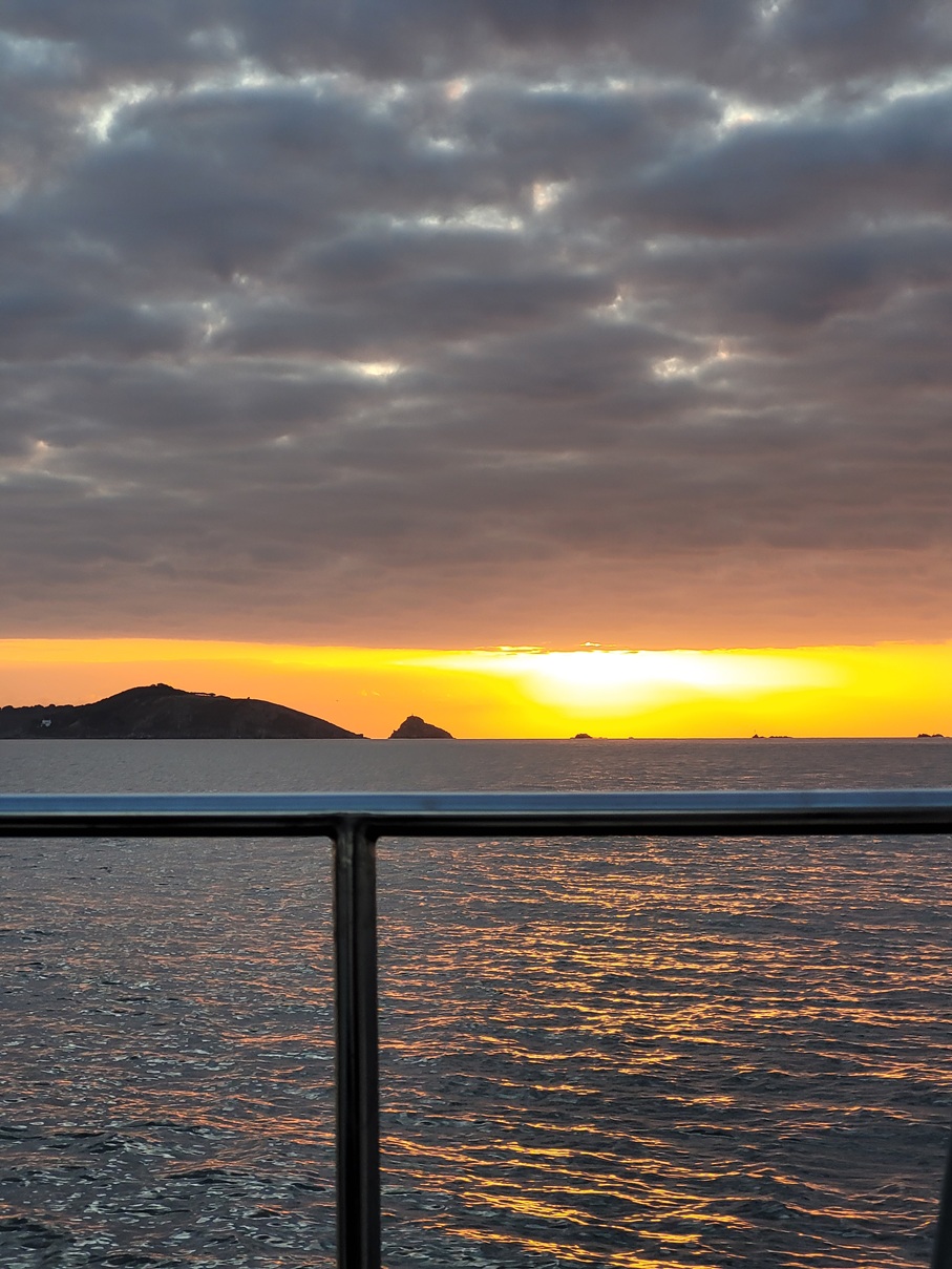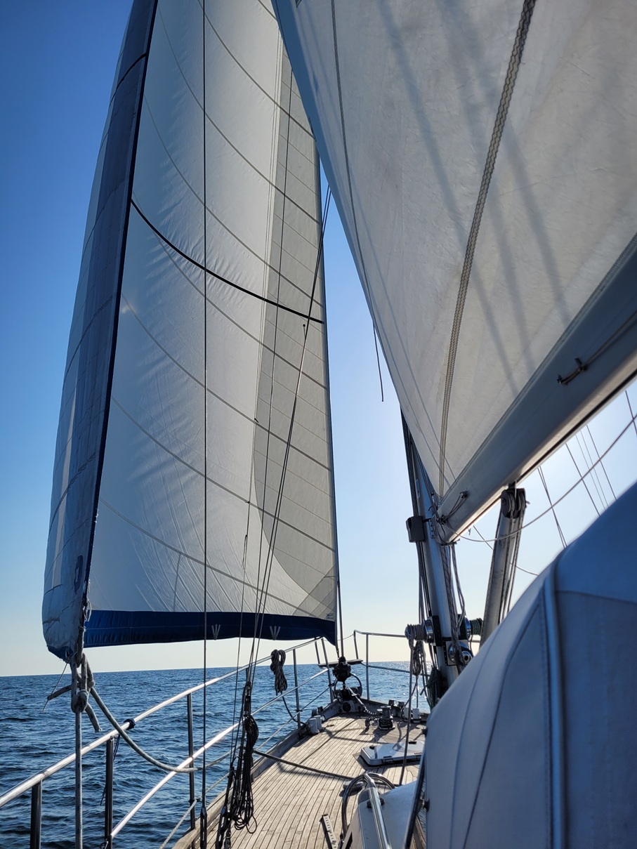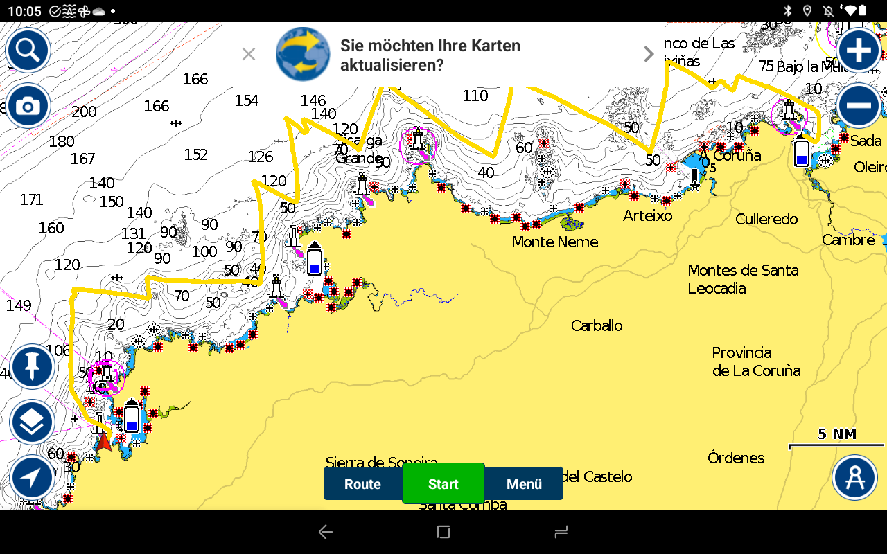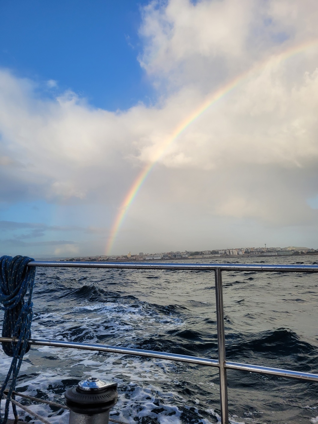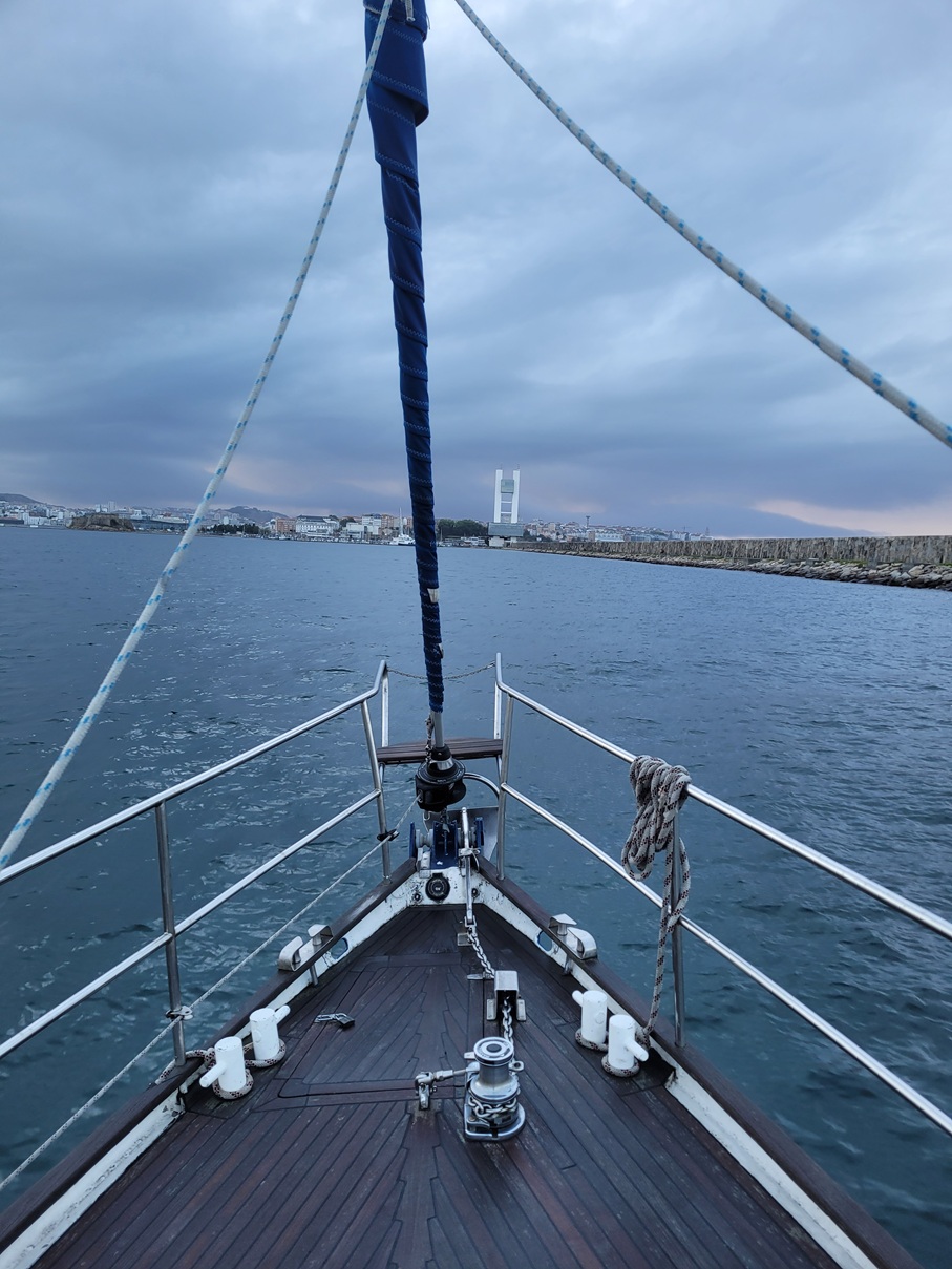 | Bemerkungen: Ok, ich machte mich auf zum spannendsten Abschnitts meiner Reise, ich musste an den Orcas vorbei. Laut Orca-App waren die letzten Angriffe auf Segelboote am 01.09.2025 im Riva Arousa und vor Vigo, da musste ich nun vorbei. Ich dachte mir, es sind ja Säugetiere, die nachts evtl. schlafen, vielleicht auch nicht so gut sehen oder keine Lust haben, so dass ich lieber in der Nacht vorbei fahre. Zuerst musste ich aber die Costa da Morta hinter mich bringen, die mir ja schon soviel Mühe gekostet hat, am Kap Finisterre war sie zu Ende. Dieses berühmte Kap heißt übersetzt das "Ende der Welt" was die Menschen vor Christoph Columbus damals dachten. Davor die Weite des Atlantiks, mit seinen mir durchaus bekannten langen Wellen die bis von Amerika rüberkommen. Mitunter ist dazwischen ein Sturm oder sogar ein Orkan, dessen Wellen uns auf der Biskaya, kurz vor A Coruna erwischten. Nun kommen wir also in die wunderschönen Fjorde, würde ich sie bezeichnen, die ins schöne Galizien hineinragen. Hier wollte ich eigentlich unbedingt mal ankern, auf meinem Hafenhandbuch ist ein Bild eines Segelbootes, welches vor dem weißen Sandstrand ankert und man badend zum Strand schwimmen konnte. Aber leider wird daraus nichts, denn die Orcas sind schlaue Tiere, die das auch wissen, hier gibt es viele Segelboote. Sie sind gerade hier, manchmal auch ganz wo anders, z.B. vor Gibraltar, aber nein sie sind hier. Also mache ich erstmal einen Bogen um diese Region. Ich beobachte das Meer genau, ob ich etwas sehen kann, aber alles ruhig bisher. Dann sehe ich hinter mir etwas schwarzes unterhalb der Oberfläche - oh nein - es springt aus dem Wasser, es ist glücklicherweise ein Delfin, die ich auf meiner Reise schon so oft gesehen habe, dann kommt noch einer, der bis zur Reling hoch springt, ich könnte mit der Hand danach greifen, so nah, dreht sich in der Luft und schaut mich an, sehr witzig dachte ich mir, als wenn er wüsste, dass ich gerade angespannt bin. Die Dämmerung kommt es wird Nacht ich, als ich an Vigo vorbei bin, gehe ich weiter unter Land unweit der 20m Tiefenlinie, so wie es allgemein empfohlen wird, beim Umgang mit Orcas, das ist ihnen zu seicht. Ich schnaufe durch und bereite mich auf die Nachtfahrt vor. Es blieb ruhig der Wind frischte etwas auf und ich komme gut voran. Wenn ich müde werde, schau ich nochmal ringsum, dann auf das Radar und auf das AIS ob irgend ein Schiff in den nächsten 3-4sm in der Nähe ist, dann schlafe ich so ca. 25 min, denn bis dahin kann kein Schiff mich erreichen, das klappt erstaunlich gut. Im Morgengrauen, erreiche ich Viano do Castello - Landfall Portugal. Dies ist das 7te Land auf meiner Reise. In dem Moment schreibt mir mein ehem. Kollege Thomas Czarnecki, dass ich gerade an dem schönen Ort vorbeikomme, wo sie letztes Jahr im Urlaub waren. So verfolgen mich meine Freunde auf meiner Homepage, live dabei. Ab da an wurde es für mich etwas schwieriger, denn die Fischer legen hier überall ihre Netze aus, und deren Flaggen muss ich im Slalom ausweichen, bis zu meinem Zielhafen Povoa de Parzim. Dieser Ort sah nun von See aus gesehen nicht so besonders aus, das sollte sich später im Hafen noch weiter bestätigen. Ich hatte den Einruck ich bin nicht mehr in Europa, es sah alles etwas ärmer aus, wie ich es gewohnt bin. Alleine die Fischerboote sahen sehr alt aus, der Fischereihafen sah aus als wenn er in einem Entwicklungsland wäre. Die Häuser sahen schon etwas runtergekommen aus, am Strand große Hochhäuser, die auch schon bessere Tage gesehen haben. Meine Marina war allerdings modern, zum Hafenmeister musste ich richtig weit laufen. Aber was mich am meisten beeindruckt hat, sind die Menschen. So eine ehrliche Freundlichkeit und Hilfsbereitschaft habe ich selten erlebt. Ich brauchte ein paar Dinge für die Aaris, und ein Hafenarbeiter fuhr mich mit einem modernen elektrischen Opel. Ich erzählte dass ich aus Deutschland hier her gesegelt bin und er zeigte mit die Stadt und erzählte gleich noch etwas über die Geschichte und die Sehenwürdigkeiten. Ein anderes Beispiel: Ich ging in die Stadt, die von meinem Steg aus nicht weit war. Da fragte ich einen älteren Herren nach einem Supermarkt, ich merkte er spricht kein englisch, ich kann kein portugiesisch, aber er erklärt mit den Händen wohin. Dann muss er vorgelaufen sein, ich sah in nicht mehr, bis er genau vor dem Eingang des Supermarktes auf mich wartete und mir den Weg in den Eingang zeigte, er verschwand wortlos. Ich war mächtig beeindruckt, sowas hatte ich noch nicht erlebt. Noch am Abend beschloss ich am nächsten Morgen weiter nach Porto zu fahren um zu Tanken, der Hafenarbeiter hat mir genau erklärt wie ich da hin komme und das ich nicht zur Ebbe nach Porto in die Tankstelle reinfahren kann. Im Morgengrauen bereite ich mich auf die Weiterreise vor, da kommt der gleiche Hafenarbeiter vorbei, ich glaube eher zufällig und fragte ob er beim Ablegen helfen soll. Ich dachte mir, ich kenne nicht mal seinen Namen, er kannte meinen und sogar wo genau die Aaris liegt. Track 056: